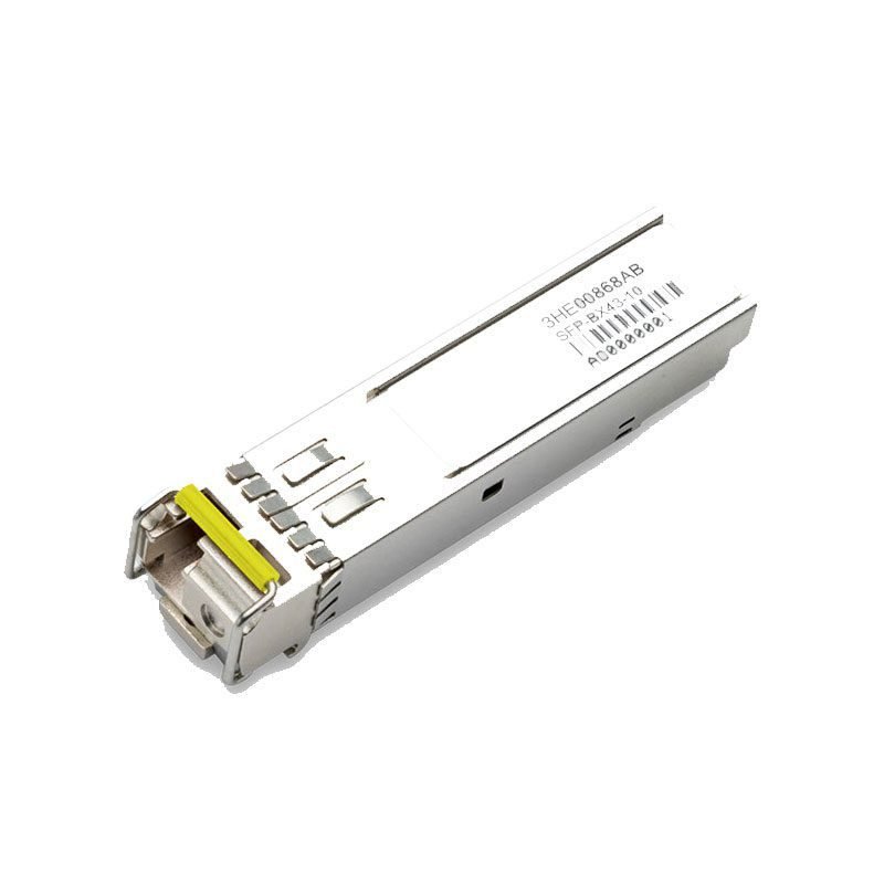 The Alcatel-Lucent KIT GigE BX10-D is a Small Form-Factor Pluggable (SFP) transceiver designed to deliver a data rate of 1Gb/s. Operating over single-mode fiber (SMF), it utilizes LC simplex connectors for seamless integration. This model operates at a TX wavelength of 1490nm and an RX wavelength of 1310nm, achieving a maximum reach distance of 10 kilometers. The device is engineered to function within an operating temperature range of 0 ºC to 70 ºC, ensuring reliable performance in diverse environments. Additionally, it supports Digital Optical Monitoring (DOM) for enhanced diagnostics and monitoring capabilities. Ideal for 1000Base-BX10-D applications, this transceiver is a robust solution for high-speed data communication needs.