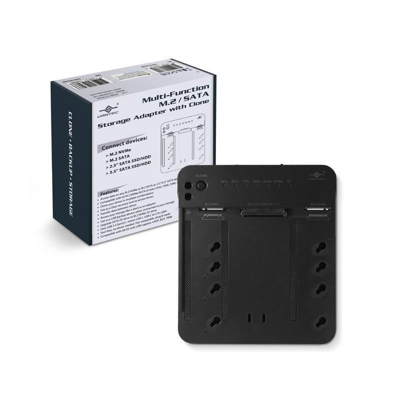 The Vantec CB-U3 is a cutting-edge multi-function adapter that supports both M.2 and SATA storage solutions, allowing for easy data cloning and transfer. With its USB 3.2 Gen2x1 technology, the adapter delivers high-speed data transfer rates, making it ideal for both personal and professional use. The Type C connection provides a universal compatibility, ensuring that you can easily connect to a variety of devices.